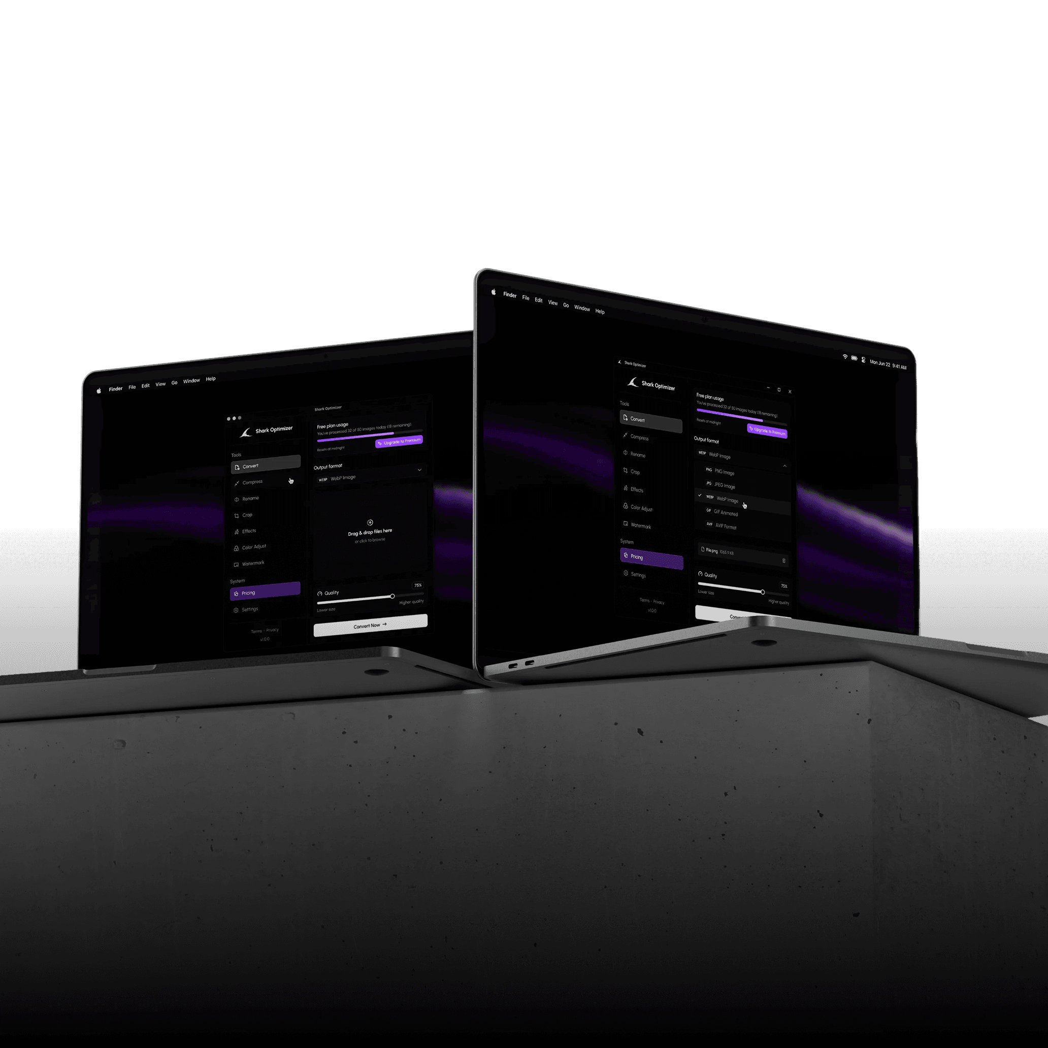 Convert any image to web-ready formats in seconds. Description: Whether you need high-quality PNGs or next-gen AVIF and WebP files for your website, Shark Optimizer makes format switching effortless.