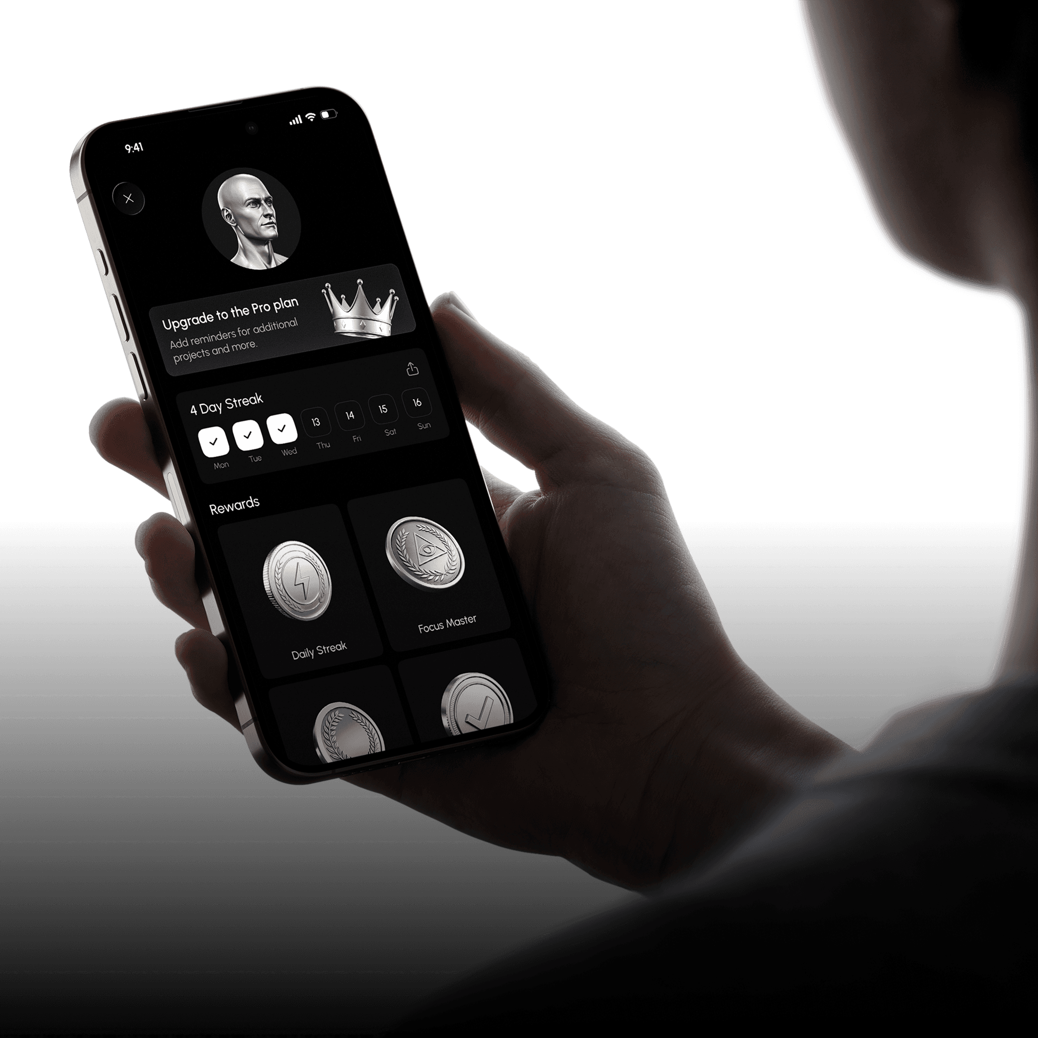 Track your progress with a visual 4-day streak and unlock exclusive silver-minted rewards. From "Focus Master" to "Daily Striker," gamify your productivity and level up your life.