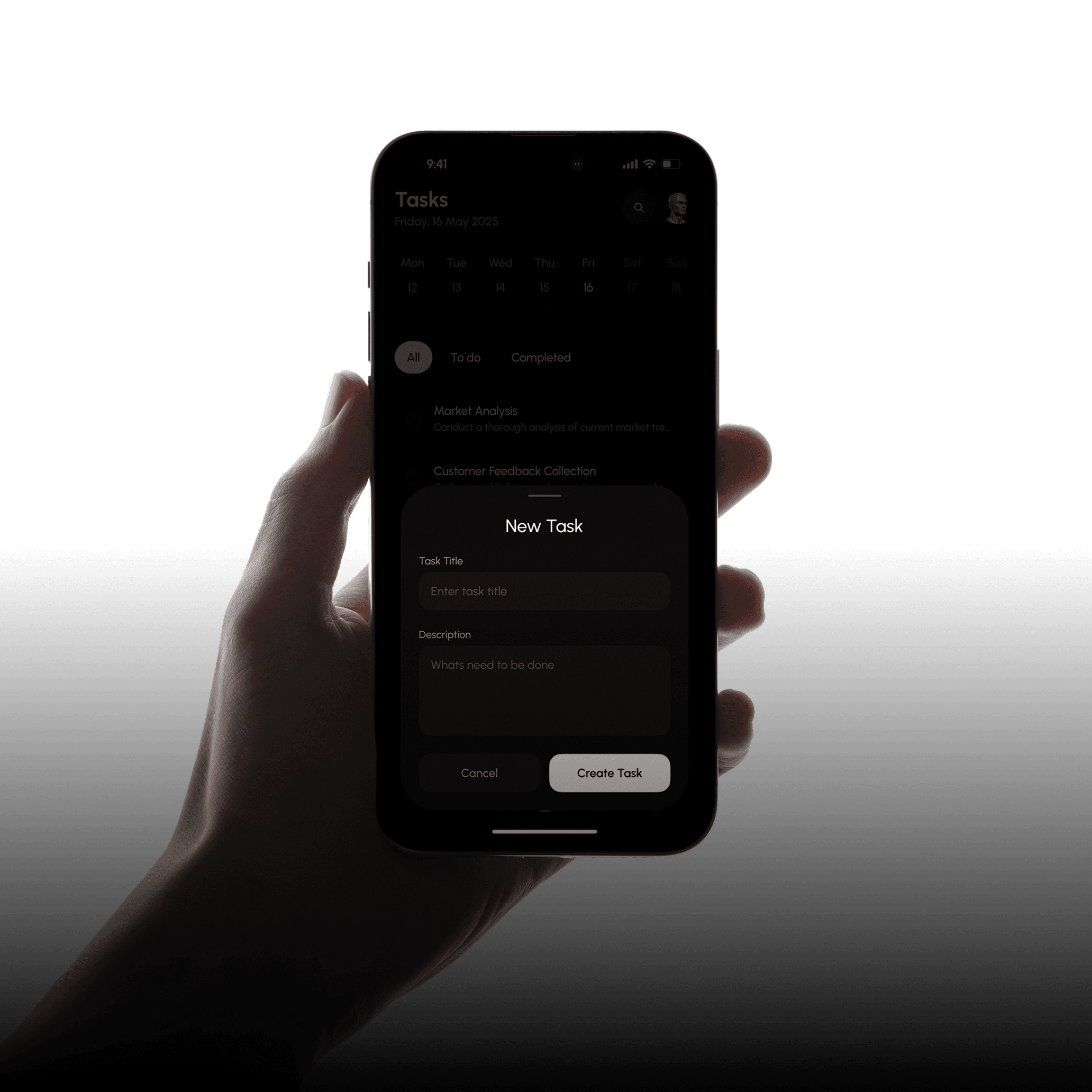 Don't let a million-dollar idea slip away. Our streamlined "New Task" modal allows you to capture priorities instantly. Define the title, set the description, and get back to the flow.